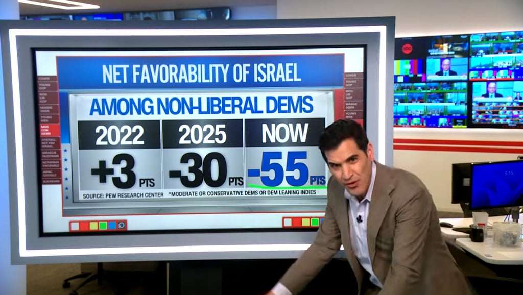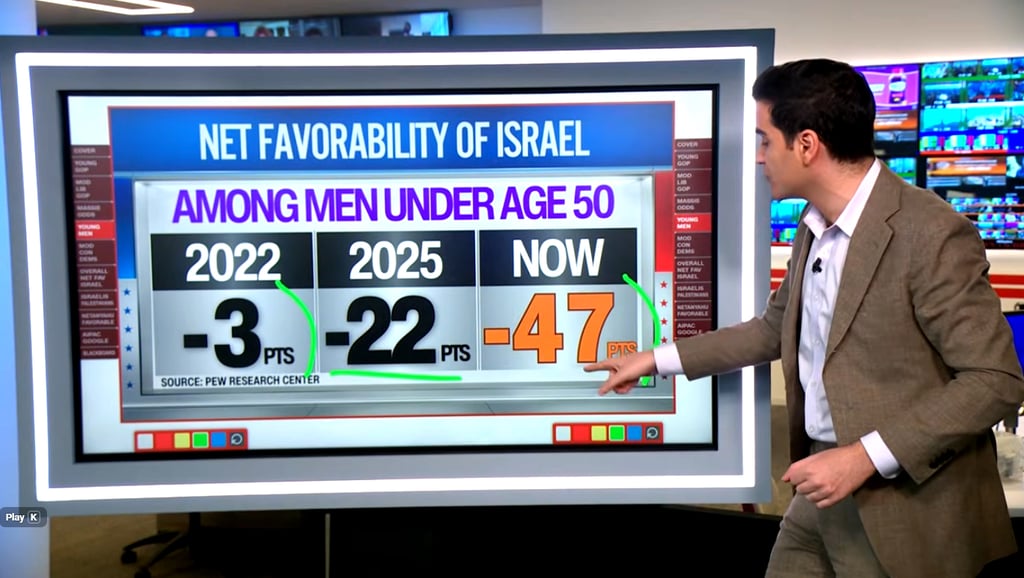 -47 points. That's a 44-point shift away from Israel on the net favorability amongst young men who, of course, shifted massively into the Republican column back in 2024, and they have been shifting away from Israel over the last four years.