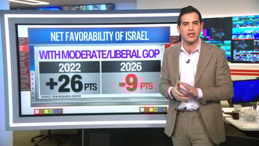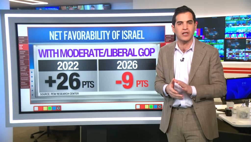 Israel's net favorability among young Republicans under 50 has dropped from a positive rating in 2022 to -16 points in 2026, a shift of over 40 points in four years.