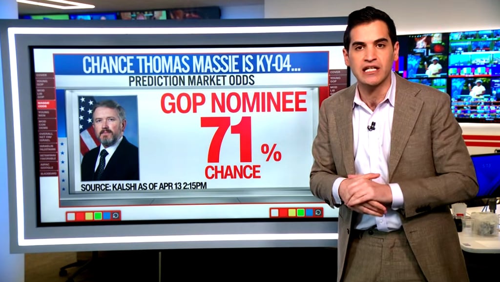 His chance of being the Republican nominee, winning that Republican primary in Kentucky's Fourth District, is actually more likely than not to occur. Look at this. According to the Cowshed Prediction Market at this point, a 71% chance.