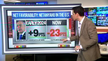 Netanyahu's net favorability in the U.S. also dropped from +9 points in early 2024 to -23 points.