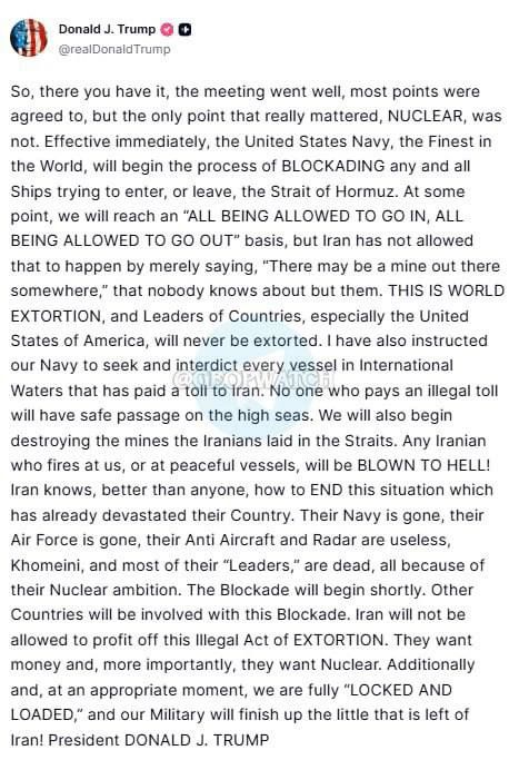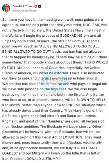 Trump Announces He Is Blocking the Strait of Hormuz