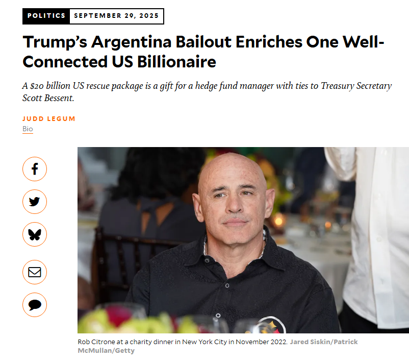 In September, for example, Bessent announced a $20 billion swap line to bail out Argentina.