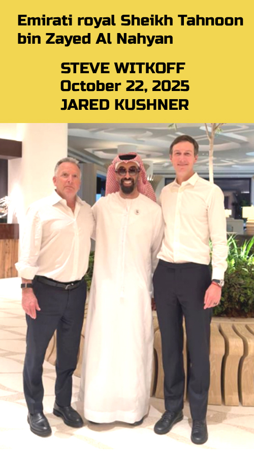 President Trump, New York real estate billionaire Steve Witkoff, Trump’s son-in-law, U.S. Treasury Secretary Scott Bessent and National Economic Council Director Kevin Hassett are all billionaires who "DO BUSINESS WITH" Arab rulers - usually involving U.S. tax dollars, assets and services.