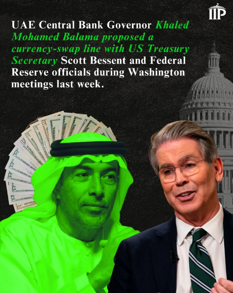 On Sunday, the Wall Street Journal reported that UAE Central Bank Governor Khaled Mohamed Balama “raised the idea of a currency-swap line” during meetings in Washington, D.C., last week with Treasury Department and Federal Reserve officials, including Treasury Secretary Scott Bessent.